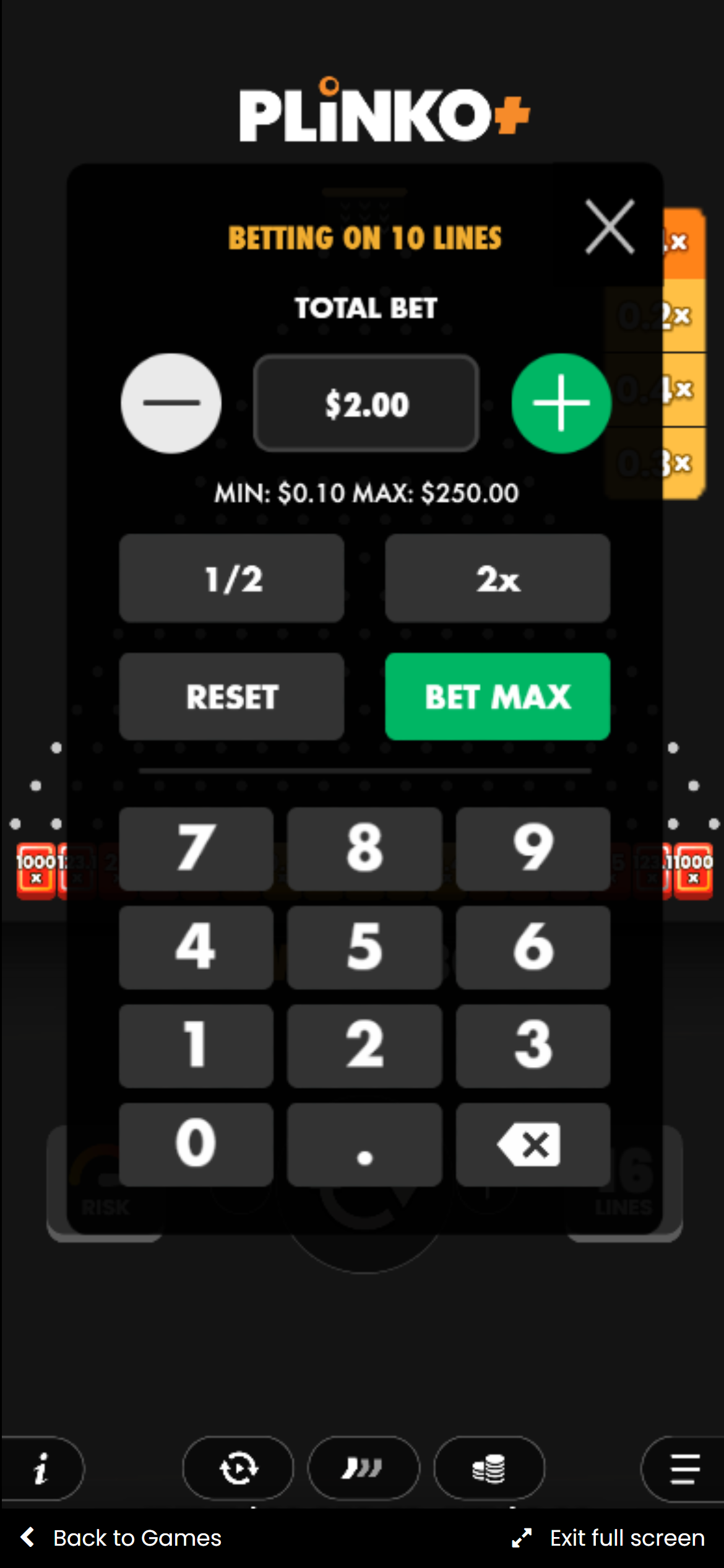 Honestly, we don't know yet. Plinko and other instant games tend to be excluded from bonuses and promotions on most online gambling sites, and Plinko+ wouldn't be an exception.